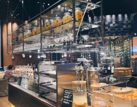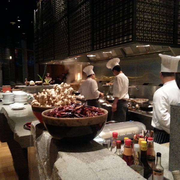餐厅非常好找,坐电梯上到3楼就立刻看到了,餐厅的装修非常华丽时尚,干净卫生,而且有多个开放式厨...