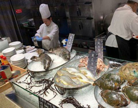 - 性价比很高的自助餐,晚餐300多一个人,餐品很丰富,有龙虾和鲍鱼,都可以随便吃,牛排的品质在自...