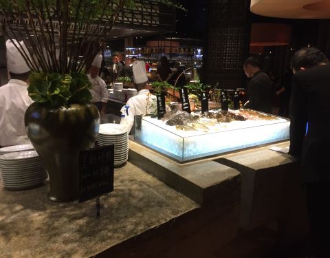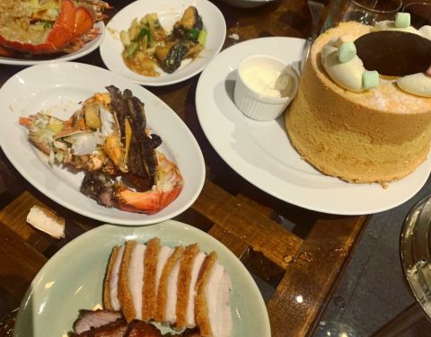 晚餐自助餐的任食龙虾当然是卖点,其它海鲜包括鱼,虾蟹,蚬,鲍鱼等,另蔬菜等,都是可个别点选烹调方法,即叫即做,送到餐桌,所出不要一次过同时要太多,一并上菜吃不完就凉了。推介龙虾汤及龙虾包。日式鱼生虽然种类不算太多,但也很好,个人喜欢甜虾及三文鱼。甜品要试梳乎里,心太软,焦糖椰青。