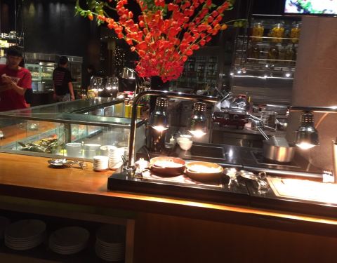 供应多国美食的自助餐厅,设有开放式厨房。
