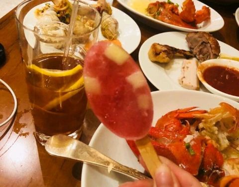 君悦的自助餐,还不错,里面吃的很多,羊排,牛排都有,还有就是海鲜也很多,龙虾也是随便吃,最后吃了一个冰激凌雪糕,水果味很足。