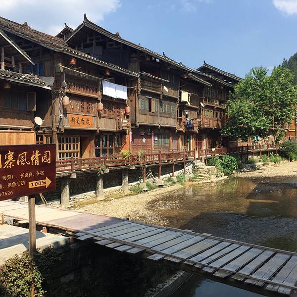 虽然景区已经出现商业化,但依然有很多寨民很平和地闲坐在鼓楼下或花桥上,过着安逸的生活肇兴作为中国最大的侗寨,其鼓楼数量和规模当然都是其他地方所无法比拟的。寨内“仁”、“义”、“礼”、“智”、“信”五大鼓楼,面积、重檐数、高度各有特长,而与他们相对应的花桥,也是很具特色。虽然景区已...肇兴作为中国最大的侗寨,其鼓楼数量和规模当然都是其他地方所无法比拟的。寨内“仁”、“义”、“礼”、“智”、“信”五大鼓楼,面积、重檐数、高度各有特长,而与他们相对应的花桥,也是很具特色。虽然景区已经出现商业化,但依然有很多寨民很平和地闲坐在鼓楼下或花桥上,过着安逸的生活。而在寨门处,还新建起一系列侗寨经典建筑,反倒有些抢戏了。 展开