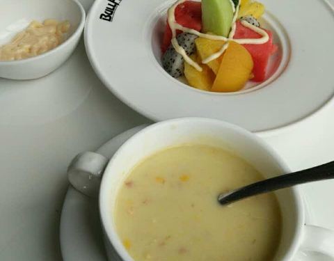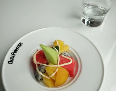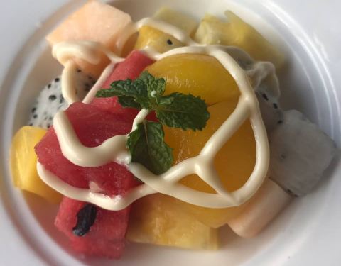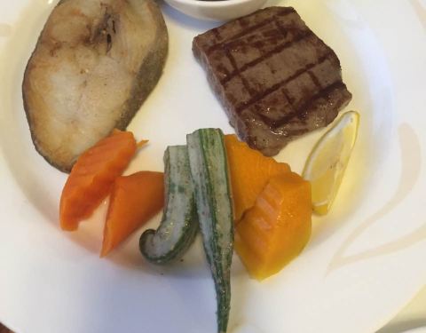 点的一份羊排,一份牛排,羊排味道很OK,水果甜品一如既往的好吃