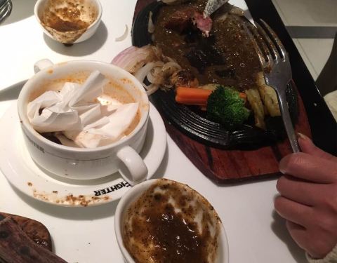 没以前的好吃了,太忙牛排上来的都是冷的,让他们重新加热了才好,没有布,桌上溅了很多油,牛排肥肉较多,餐巾纸问服务员要了才给,太忙也不能缺了服务啊!