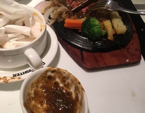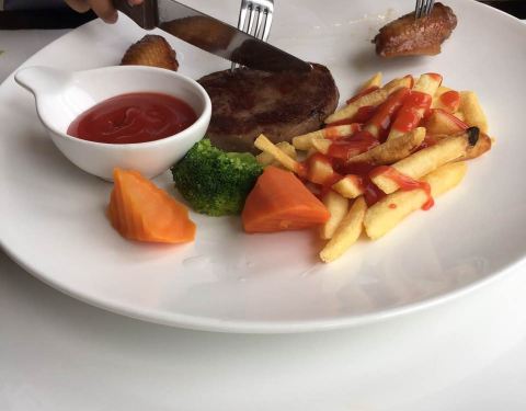 - 没以前的好吃了,太忙牛排上来的都是冷的,让他们重新加热了才好,没有布,桌上溅了很多油,牛排肥肉...
