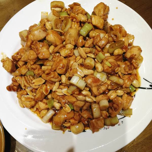 晚饭在那家老院子吃的一锅小鲜肉港式宫保鸡丁家乡四炒金蒜小菇烧秋葵菜团子,加上米饭,共计:130元