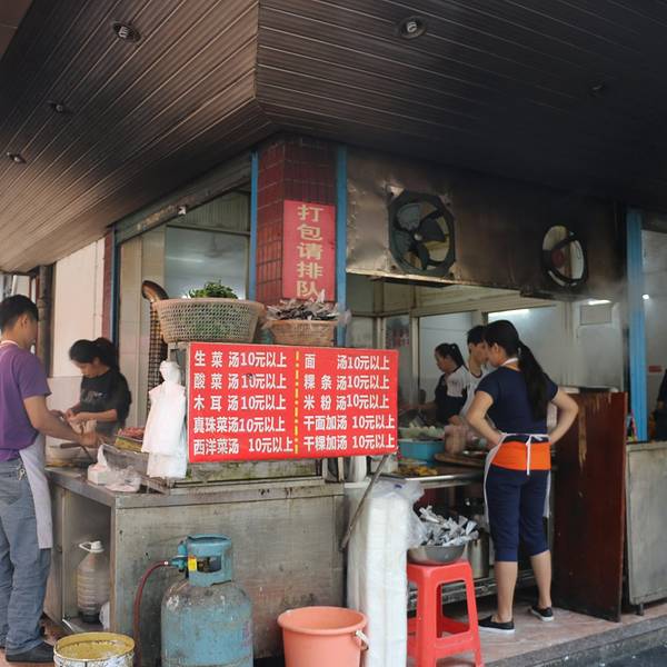 很火的一家肠粉店,店铺还挺大的,环境一般,人多嘈杂,很多当地人也在吃,有各种肠粉、粿、汤等当地小吃。 肠粉味道还过得去,可能是我期望太高,不过鱼丸粿汤不错,主要是鱼丸好好吃,一碗里面有六七个,特别满...很火的一家肠粉店,店铺还挺大的,环境一般,人多嘈杂,很多当地人也在吃,有各种肠粉、粿、汤等当地小吃。 肠粉味道还过得去,可能是我期望太高,不过鱼丸粿汤不错,主要是鱼丸好好吃,一碗里面有六七个,特别满足,里面粿条感觉就是米粉差不多。 服务尚可,谈不上热情也看不到微笑,问啥也说要啥也拿~