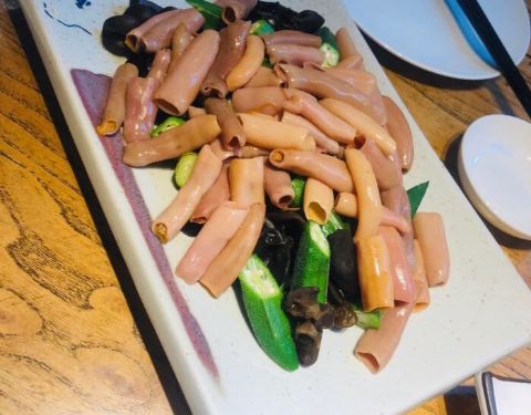 量大实惠的家常馆子,环境略嘈杂。彩虹水饺最受欢迎,黄花鱼、墨鱼、虾仁各种馅料,滋味丰富。海肠是青岛比较特色的小吃,滋味鲜美,建议点上一份。