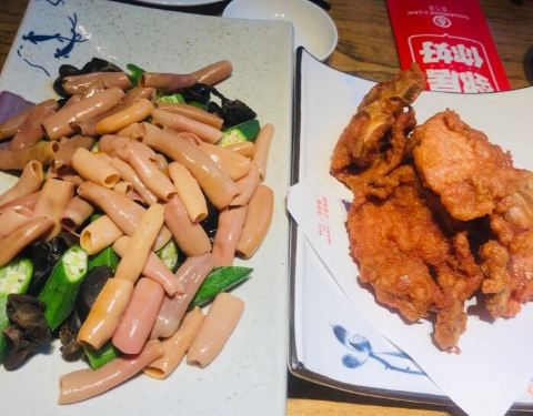 每次来青岛旅游都会来这个店,也推荐给朋友来 吃这个店,这个店是青岛的连锁店,很多本 地人也来吃。 饺子是这个店的特色,喜欢吃海鲜全家福, 每个味道的馅料都可以吃到。饺子馅儿非常 非常的丰富。 最爱吃的海肠,这次要的是辣根做的下面配 了木耳和秋葵,想想第一次来吃的时候海肠 50多,这次已经98了。但是鮮海肠在北方毕 竟还是很难得的。 因为这次下午到的,没吃到烤猪五花和烤笔 管儿。就点了招牌的炸大排,帯骨猪排配青 岛啤酒,真的是绝配 这家每次来都发现菜牌換了,不断推陈出 新,服务也一直跟得上
