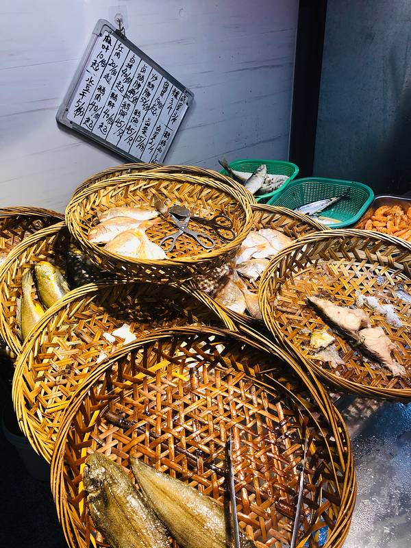 第一道卤水鹅肝,细腻软嫩到以为自己吃的是舌头,一定要搭配加了蒜粒的白醋,大蒜用来提味,白醋则完全去掉了鹅肝的肥腻。第二道,虽然我们俩不惧怕海鲜,但是考虑到肠胃一天的承受能力,还是选择了看起来相对“清新”的生腌虾,没想到鲜甜的口感,让我俩吃完第一口就停不下来……潮汕人精通十八般海鲜烹调手艺,却对生腌情有独钟,他们认为,生腌能最大程度保留海产的鲜味。生腌海鲜是将海鲜浸在用豉油、辣椒、蒜头、芫荽等制成的腌料中,有的腌一天,有的即腌即吃。生腌配料还有其他讲究,比如下鱼露提鲜,加红糖增甜,放南酒去腥等等,如此种种,对于保留食材“鲜味”的能力,我的确很佩服潮汕人。▲老姿娘业粥的生腌系列。▲只有鱼,没有饭的“鱼饭”。