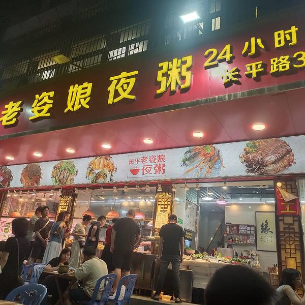 - 长平路的这家老姿娘夜粥,是24小时营业的,很多特色潮汕夜粥菜品都可以品尝到,鱼饭和卤味值得尝尝