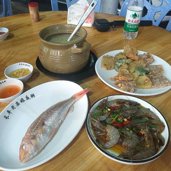 推荐指数:不推荐📣📣📣这是家大众评分很高的店 但是。。。 无论是环境、菜品还是服务 都是非常非常一般 仅此一次,下次绝对不会再去各类生腌们📣📣📣各类鱼饭们📣📣📣各类海鲜们📣📣📣#金不换炒薄壳# 💰30元 这是道非常地道的潮汕菜 薄壳是潮汕沿海特产海产品 这也是家家户户会做的第一菜 但是。。。 这家做的也太败坏潮汕特色了吧! 不好吃!一点都不地道!就剩咸味 什么锅气什么九层塔都没了🤪 强烈推荐大家试下这道菜很好的夜粥下酒菜,但是别在这家吃🙅🏻♂️#生腌皮皮虾# 💰25元 生腌是潮汕菜的一大特色 秉承着万物皆可腌哈哈哈,尝起来别有一番风味 当然🧐那些说什么不卫生啊寄生虫啊好残忍等等慎入,各花入各眼~#苦瓜煲# 💰30元 就那样吧,如图~不推荐很不嗨心的晚餐🤣🤣 去找点别的🚲🚲🚲路过美食街买了个化石饼🤩看到里面的虾了吗哈哈哈