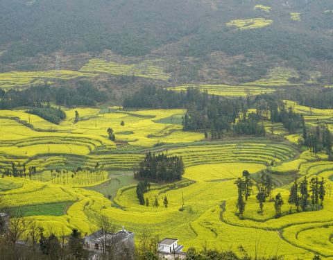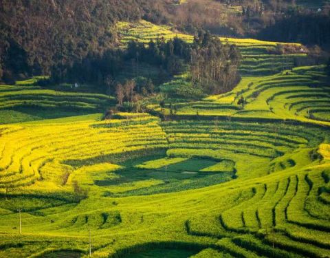 有别于梯田的越往上越窄小,螺丝田的轮廓更为柔美,格局更为开阔,是赏花拍照的绝佳之地尽管你可能已经看了很多油菜花,但你仍然应该在春暖花开的时候来看看罗平螺丝田。山与树,青苗与菜花,绿色和黄色,互相映衬,错落有致。有别于梯田的越往上越窄小,螺丝田的轮廓更为柔美,格局更为开阔,是赏花...尽管你可能已经看了很多油菜花,但你仍然应该在春暖花开的时候来看看罗平螺丝田。山与树,青苗与菜花,绿色和黄色,互相映衬,错落有致。有别于梯田的越往上越窄小,螺丝田的轮廓更为柔美,格局更为开阔,是赏花拍照的绝佳之地! 展开