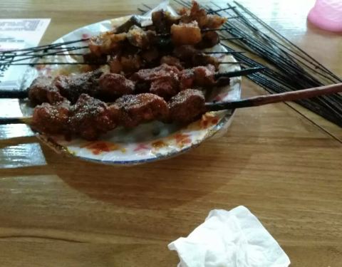 貌似特别实在的人,烤肉味道超级棒,,老板娘特别热心,服务也很好,杏皮水很好喝,只是环境差,里面特别热,只能坐在门外面啦。