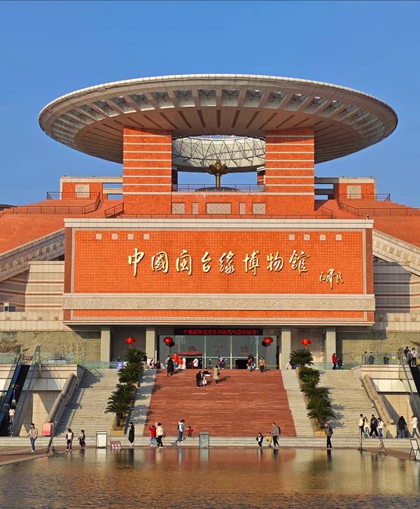 尚未入馆,建筑本身已道出半部闽台史。主体建筑以闽南传统“出砖入石”工艺砌成,红砖与白石交错咬合,像极了两岸文化基因的交织共生。19米高的九龙柱直指苍穹,龙纹雕刻融合了闽台两地的造像风格——龙头借鉴泉州开元寺的盛唐气韵,龙身鳞片则带着台湾庙宇的灵动,柱底的波涛纹暗合“共饮一江水”的意象。
