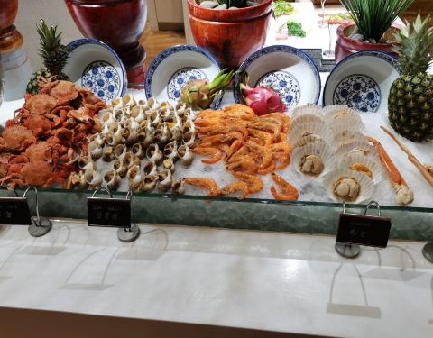 - 海鲜感觉很新鲜,品种丰富多样,各种甜点我都很爱吃,西式中式菜品都很多,还有明档煎煮肉类面食类,...