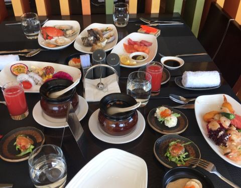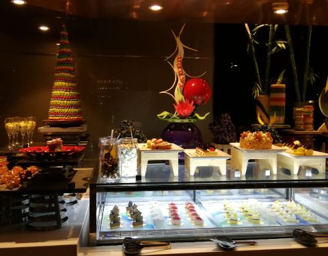 超棒,选择很多,日式的西式的,最爱烤羊排,很香,环境也很不错,可惜晚餐不能吃太多,所以没有全部尝试完,甜点很诱惑啊!