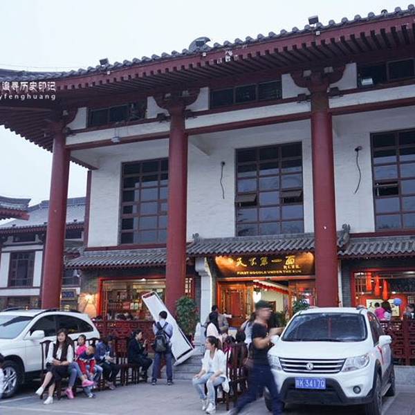 大雁塔北广场的天下第一面,在大雁塔的西北方向,整个餐厅建筑古色古香的,炒菜也很精致,二楼包间很典雅。是聚会吃便餐的好地方。