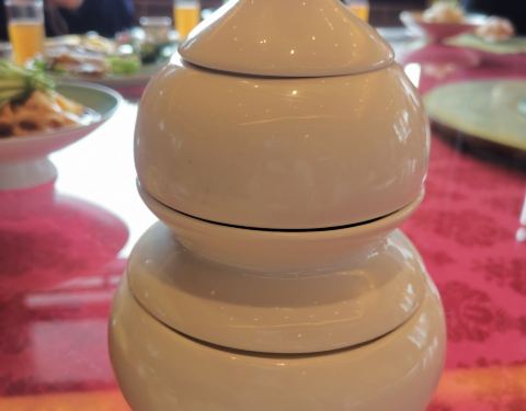- 三鲜的汤比较好吃。关中四蒸碗,份量不大,刚刚好,四种蒸菜配白馍,好吃。好多人,拼了一桌