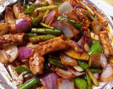 華貴路口車站附近一條小巷美的大排檔!我們喜歡坐外圍不喜歡坐堂內,飯店主打聚會冰皮水晶雞,所以點了半隻試試,覺得不錯好有有雞味,突然看見有我喜愛的糯米飯也要了一個,這個還真不賴,只是糯米飯上面的炸花生沒有炸好,有花生的草腥味,鐵板竹腸味道不錯,竹腸內有粉非常正斗!整餐飯都比較滿意值得推薦!