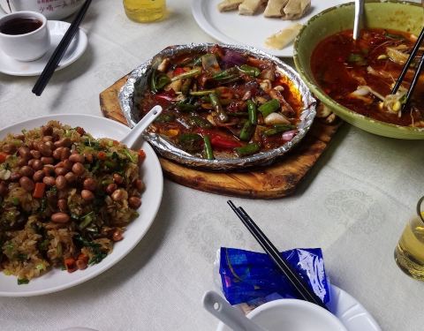 華貴路口車站附近一條小巷美的大排檔!我們喜歡坐外圍不喜歡坐堂內,飯店主打聚會冰皮水晶雞,所以點了半隻試試,覺得不錯好有有雞味,突然看見有我喜愛的糯米飯也要了一個,這個還真不賴,只是糯米飯上面的炸花...