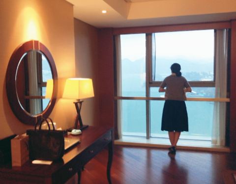酒店坐落湖边,豪华湖景房超赞,站在阳台上面对湖中小岛,感觉置身在世外桃源。