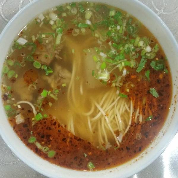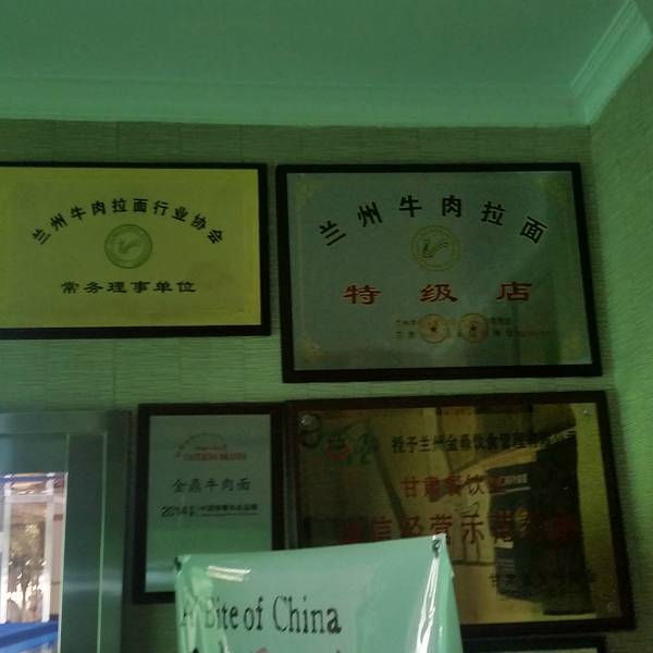 这家店是总店,共有两层,我们去的时候是上午十点多了,人不算特别的多。由于我们人多,直接上了2楼的甘肃厅。饭店的一层类似于快餐店,还有外卖的熟牛肉!在一进门处就能看见舌尖上的中国兰州拉面传人的易拉宝以及很多的招牌!我们要了些小凉菜和牛肉。不得不说,他家的牛肉做的非常的烂。入口香软,十分有嚼劲。赞!接下来说说他家的面,面很劲道,不粗不细,吃起来很坐实。汤头很讲究,鲜味十足。不愧为地道的兰州拉面!推荐去兰州玩的朋友们不妨去他家吃一吃。