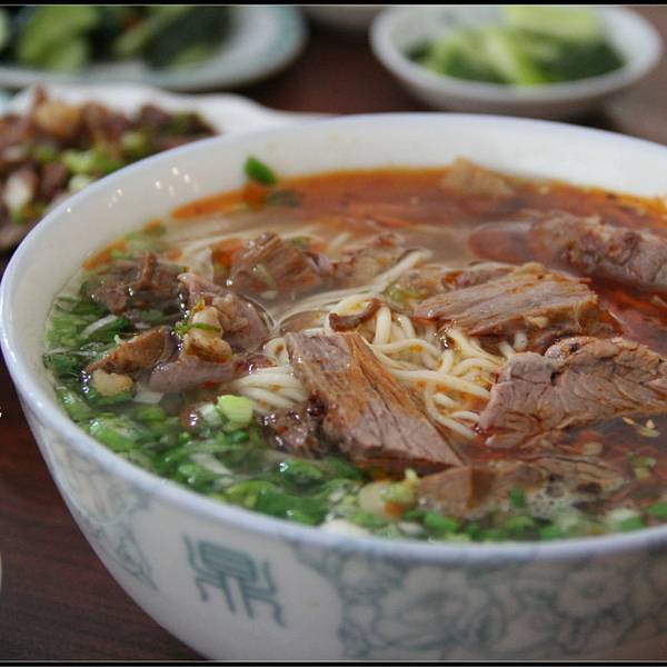 到了兰州当然要吃兰州拉面了,我们去的是平凉路的金鼎牛肉面馆,两人一人来了一碗10元的牛肉面,还称了一点牛肉,其实牛肉面味道真的不错,不过介于我们吃面吃伤,这个面就没那么惊艳了,另外我们发现西北的面食...到了兰州当然要吃兰州拉面了,我们去的是平凉路的金鼎牛肉面馆,两人一人来了一碗10元的牛肉面,还称了一点牛肉,其实牛肉面味道真的不错,不过介于我们吃面吃伤,这个面就没那么惊艳了,另外我们发现西北的面食总的来说味道都偏简单清淡,而成都的面却是色香味俱全,麻辣的香辣的,各式各样的配料,生为成都人,还是更喜欢家乡的面啊。