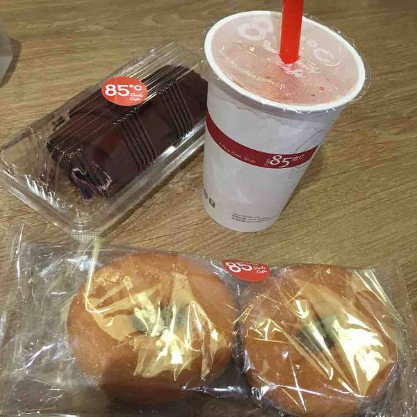 平時逛街累了,都會來85度點杯熱飲+二件芝士蛋糕,喜歡喝他們家的柚子茶,甜而不腻,下午12點到18點還有優惠立減3元喲!甜甜圈的口感有點像我們廣東的咸煎餅.店內環境衛生挺好的,每次來都能在吧台上休息個把小時...