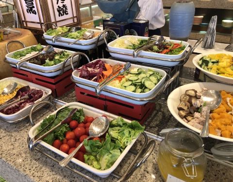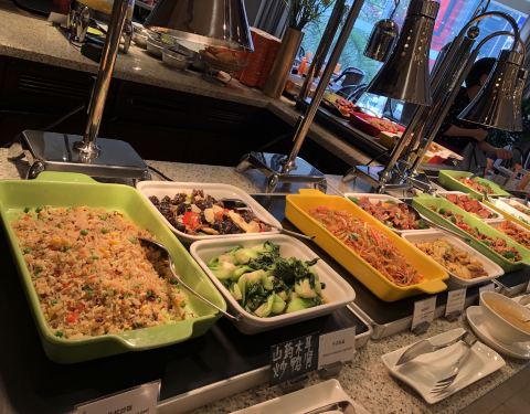 朋友约了今天中午来喜来登探店,说对比了很多家自助餐只有这家中午有新鲜生蚝,觉得性价比不错。 团购有优惠才200不到一个人,确实不错。种类虽然没有铭门盛宴之类的那么多,但也真的很不少了,对得起价钱。 【环境】坐得很舒服,因为今天中午人不算多,而且通风也做得很好,所以空气挺好的,不会有太闷的油烟味。装修也很大气漂亮。 【服务】服务挺好的,看到空盘子会主动过来帮忙收拾。问他们什么问题也会微笑着耐心回答你,不错不错! 【口味】新鲜生蚝好吃,挺鲜美的。但烤生蚝就不太推荐,烤得一般而且有点不新鲜的味道。热菜品种也很多,烹饪得挺好吃的。 三文鱼等刺身也摆了很多出来,随便拿的节奏,完全不需要排队,这点真的很好。 沙律与水果也挺多品种的,调的酱料好吃。 饮料的品种很多,任君选择,因为我是不怎么喝咖啡只喜欢喝茶的,茶的品种虽然不多,但常有的都全部有,而且质量也不错,我喝了很多杯。 甜点是我最最推荐的,很好吃,是我喜欢的不太甜腻的味道,吃多了也不会腻,超级喜欢的。 下次必须再带妈妈来试试。