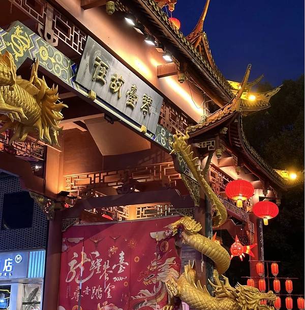 来琴台路仿古街,主要是看建筑、看川剧、喝茶、吃火锅、赏古玩,感觉挺有档次。过年期间,这个街道被红灯笼妆点,有着浓郁的年味儿;只是上午来这里,店铺都没怎么营业,感觉有点冷清,估计这里的夜生活很热闹,夜景灯光更美吧。