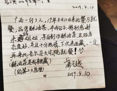 ...式餐厅,收获满满的回忆,首先是服务,热情洋溢的藏族小姐姐米玛服务非常棒,儿子还给他写了感谢留言
