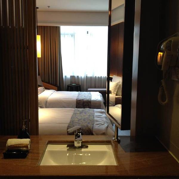 金骆驼 冬天是旺季周末人特别多,大多都是武汉过去的,周末很难订到房间,于是提前一周在去哪儿网订了一个家庭套房第一次去咸宁泡温泉,去之前跟朋友打听了下,据说三江森林算是比较好的一家,冬天是旺季周末人特别多,大多都是武汉过去的,周末很难订到房间,于是提前一周在去哪儿网订了一个家庭套房,还有100块返现。周六早上...第一次去咸宁泡温泉,去之前跟朋友打听了下,据说三江森林算是比较好的一家,冬天是旺季周末人特别多,大多都是武汉过去的,周末很难订到房间,于是提前一周在去哪儿网订了一个家庭套房,还有100块返现。周六早上11点从武汉出发,导航上大概是100公里左右,差不多一个半小时就到了,我们是从咸宁北下的高速,高速过路费35块。三江森林温泉在河边,旁边是一排别墅区,背后是一座山,环境是不错的。从大门口进来有很多卖温泉门票的,我们是提前在去哪儿网订的门票148返19块,比门口叫卖的特价门票还要便宜一点。酒店大堂的人确实很多,前台已经提前按照预定做好了房卡,这点我觉得不错。我们定的家庭套房是一个连通房,有两个房间,一大两小共三张床,中间的连通门是锁起来的,也可以叫服务员打开,我们跟朋友一家正好,挺合适的。房间的空调制热不错,温度很快就起来了。