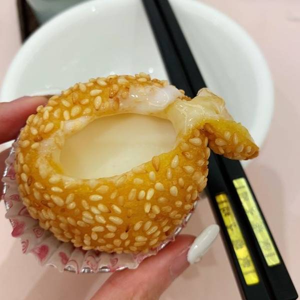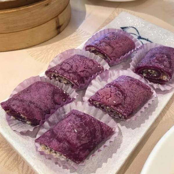 这是一家本地人推荐的早茶店,环境、菜品都8错!甜薄撑是我看到必点的,紫薯甜薄撑是第一次见,当然要试。皮子有一点紫薯香,里面包着白糖和芝麻,没有花生粒,每咬一口都唇齿留香。金丝银蒜蒸排骨也是喜欢的,排骨很嫩,瘦而不柴,没有裹多余的生粉,是喜欢的味道。虾籽烧卖下面垫着铝箔,为什么呢?因为皮特别薄,汤汁满溢,一不小心就夹破,需要一层保护呢!烧卖上有满满一勺的虾籽,用料一点都不含糊。燕液金秋是店里的招牌产品,也是这一顿最贵的一道点心,别看它外观像一颗普通的小麻球,里面可藏着宝呢。轻轻咬开小口,椰香扑鼻而来,里面包着滚烫的椰浆,粘稠度特别的高,和油炸的糯米配在一起,堪称一绝。