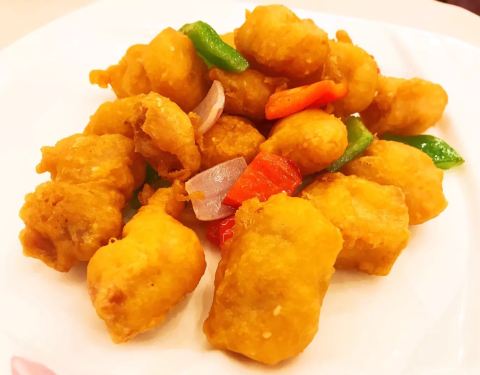 手撕盐焗鸡,虽然分量不算大,但味道很有特色。脆皮咕噜肉和霸王炒虾,才28元/例,撚手小菜却做出了星级的水平。饭后还送了水果拼盘,可见店家的待客诚意。 这里环境舒适,出品不错,服务态度好。