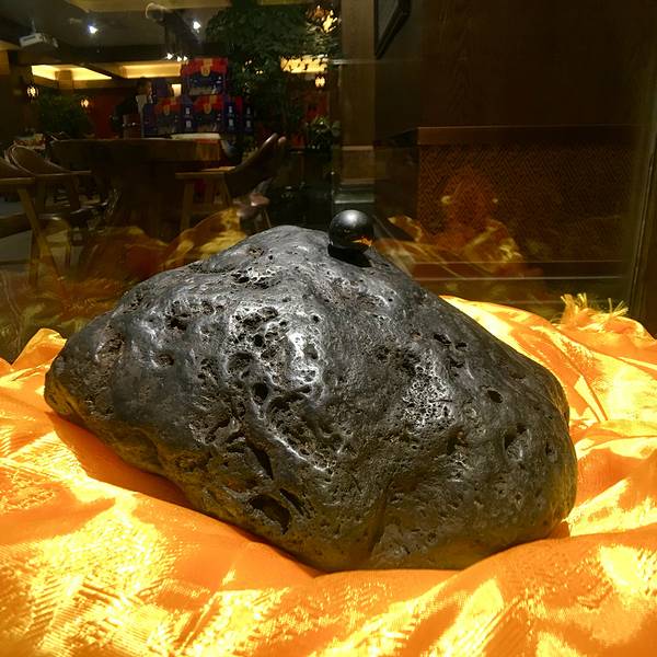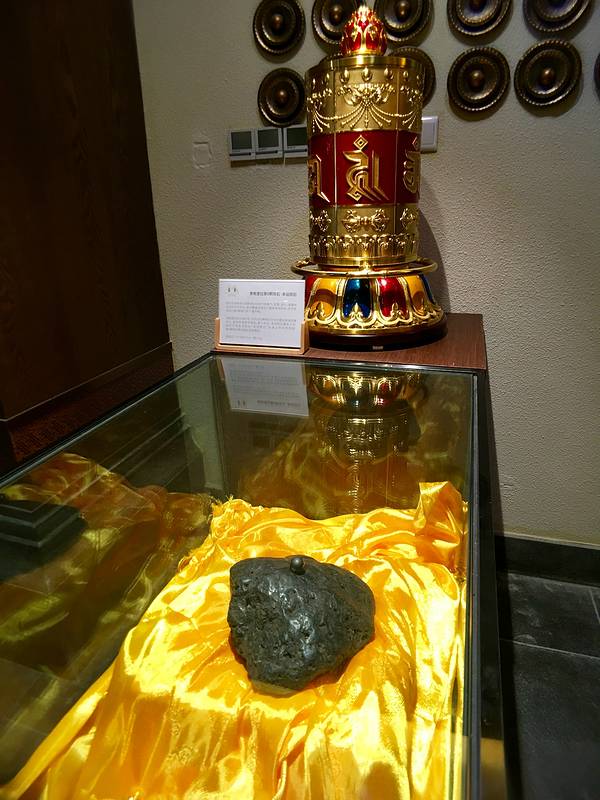 经过了山路好几个十八弯,途径虎跳峡,一路攀升到海拔3300米,经历难熬的4个小时,终于我们到达了我心中的朝圣地之一,香格里拉。到达目的地独克宗花巷,已是晚上9点多,此时的我因为晕车,外加高反,整个人十分难受,在得知即将入住的酒店有24小时供氧之后,才感觉到了重生,第五颗陨石光年酒店呀,你简直就是我亲妈~步入酒店,感受到的是一种浓浓的藏式风格,迎面而来是一个展柜,里面放了一块黑色的陨石,传说,香格里拉有五颗陨石,其中四颗被当地名门望族保存所有,分别代表着勇气、智慧、爱心和健康,而最神秘的就是第五颗陨石——其代表着幸运,今日有机会一睹这真陨石的风采,看起来,真的是幸运之神眷顾了我一回呢,当然也希望每一个看到幸运陨石的人,也都能够好运常伴哦。看见这颗陨石了么,代表幸运的哦~看见陨石的兴奋,对藏式风格酒店的好奇,让我一瞬间忘记了高反带来的不适,弄完房卡进入了各自的房间以后,我才意识到我的高反好像减轻了不少,心里暗爽,真不愧是五星级酒店呀,这样的供氧系统,真是太奢华了~