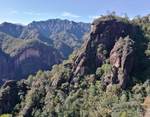 悬崖、险峰、溶洞,千姿百态色彩斑斓,景区中有千龟山、黎光佛、鸟王山等景点,奇异的丹霞地貌非常值得去玩老君山景区,以红色砂岩形成的丹霞地貌而名。面积达240平方公里,是国内面积大,发育完整的丹霞地貌,悬崖、险峰、溶洞,千姿百态色彩斑斓,景区中有千龟山、黎光佛、鸟王山等景点,奇异的丹霞地貌非常值得去玩!