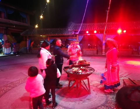 看见陨石的兴奋,对藏式风格酒店的好奇,让我一瞬间忘记了高反带来的不适,弄完房卡进入了各自的房间...第三日清晨,被阳光叫醒,我们来到了大水车,恰逢农副产品丰收节,品尝了许多当地有特色的美食,还有新鲜的水果,尤其雪桃和石榴口感让人惊艳,欣赏了民族风的歌舞,还和漂亮的小姐姐合照,体验非常好。上午9点,...第三日清晨,被阳光叫醒,我们来到了大水车,恰逢农副产品丰收节,品尝了许多当地有特色的美食,还有新鲜的水果,尤其雪桃和石榴口感让人惊艳,欣赏了民族风的歌舞,还和漂亮的小姐姐合照,体验非常好。上午9点,看了会盛大隆重的丰收节,我们便搭着一早约好的车,去了老君山黎明丹霞地貌景区,全程3小时车程。这里的丹霞地貌的成因有很多种说法,传说是这里的太阳光辉,映红了溪流,映红了山峰,映红了蓝天;也有人说当年的太上老君曾在这里炼丹,那攒动不灭的火焰一直蔓延到一片斑驳的山岩,天上燃烧的陨石纷纷坠落在这里,于是就有了这一片丹红色的悬崖峭壁,老君山也因此得名。其实由于行程问题,预留在这里的时间很紧迫,坐着缆车上去,拍了点照片,就又坐着缆车回来了,原本想在景区住一晚的计划了泡了汤,带着满满的遗憾,我们又搭车回了古城,下次吧,希望下次还有机会来欣赏这大自然的鬼斧神工。回到客栈,听说观景台风景不错,于是便上去小憩了一会,没想到却收获了意外的美景,当真应验了那句话, 丽江 古城处处是景,随处一隅,都能拍出不一样的韵味。傍晚一行人依依不舍的搭上了去 香格里拉 的大巴,心里还回想着客栈老板这两天以来对我们的叮咛和帮助,顿觉一暖, 丽江 真好,再见了。