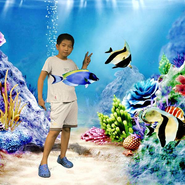 儿子在实践发电机原理万花筒凭成人的1张门票免费拍摄并打印塑封2张3D照片