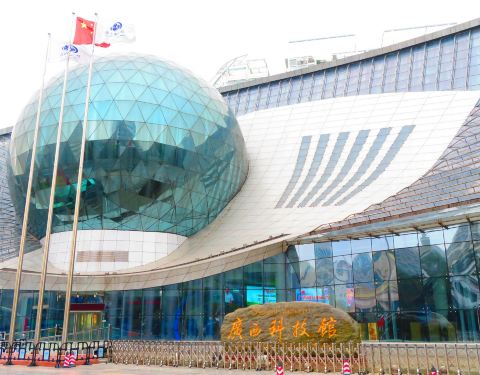 广西科技馆位于南宁市中心民族广场斜对面,是一座展品丰富的科普中心。这里不仅有诸如汽车解剖、绕月飞行模拟器等高科技的展示,也有时光隧道、恐龙探秘等适合儿童的内容,还有虚拟游漓江、4D影院等体验项目。展馆共有四层,第一层为临时展厅,这里会不定期地开展科普及学术知识展出。馆内二、三、四层是常设展厅,包含儿童乐园、科学探秘、环境生存、生命健康、信息世界、挑战与创新、未来展望等七个分区。二层的展示品更适合儿童,设有儿童乐园、科学探秘展区,能让儿童和家长共同参与互动。第三层主要展示与人类生存、现代社会生活和可持续发展密切相关的课题。第四层则展示目前广西所面临的重大社会课题与挑战。常设展厅馆内二、三、四层为常设展厅,面积约9000㎡,以“探索·科技·创新”为主题,共设展项展品约236件(套),主要涵盖了工程技术、信息技术、生物工程等与人们社会生活、可持续发展密切相关的重要领域。同时,还注重挖掘广西、东盟各国地域特色、科技发展成果等资源。常设展厅依序设置为:启迪与探索、科技与生活、创新与展望三大展区,包含儿童乐园、科学探秘、环境生存、生命健康、信息世界、挑战与创新、未来展望等七个分区。临时展厅临时展厅位于科技馆一层,展览面积约2400㎡,主要举办承办短期的科技主题或热点专题展览,形式多样,多面向学校、社区。特种影院科技馆内拥有二个特种影院——球幕影院与4D影院。球幕影院占地约250㎡ ,可容纳166人,兼有天象节目和球幕电影双重功能,观众可欣赏到全新的球幕电影和许多罕见的星空运动及天文现象。4D影院约60㎡,可容纳38人,剧场通过立体影像的运用,配合环境喷水、吹风烟幕等技术,带给观众非凡的视觉震撼和体验。青少年科学工作室青少年科学工作室位于科技馆办公楼六层,免费对公众开发,可预约科普活动。工作室分为机器人、科学探究、天文、亲子科学体验、个性印染等五个主要活动区域。青少年通过亲手参与实验等,了解和体验科学思想、科学方法,拓展和深化知识结构。机器人工作室机器人工作室分为展示和培训两大区域,进行各类青少年机器人的研究型学习和竞赛培训等,在青少年中开展机电一体化和计算机过程控制科学知识和技术的初级教育,使他们了解前沿科学知识,激发他们进行科学探究的兴趣和参与科技创新的欲望。科学探究实验室科学探究实验室内设有科学实验剧表演和科学实验体验活动两大类活动。科学实验剧表演通过通俗易懂、富有感染力的实验表演将抽象的科学原理展现出来,激发青少年对科学的好奇和思考,同时让他们了解一定的科学知识。科学实验体验活动则将看似复杂而神秘的科学实验,通过严谨的操作流程、安全且易于操作的实验内容,让青少年在实践过程中养成科学的研究态度和严谨的实验习惯。天文工作室天文工作室会定期举办天文科普知识讲座,由天文科普专家讲授,不但通俗易懂、具有互动性,而且与重大天象事件相结合,青少年能够在轻松愉快的氛围中学习天文知识。定期还会组织户外观测活动,将理论知识与实践相结合。亲子科学体验工作室亲子科学体验工作室开展以家长和孩子一起动手为主要形式,采用多种简单易用的教具进行的教学活动。家长与孩子在轻松愉快的氛围得到充分交流,并同时了解实验中的科学原理,孩子们将在潜移默化中培养科学的学习态度和实验习惯。印染工作室印染工作室以数码制作为主题,主要开展数码印染、手工印染和民族创意手工等制作活动。让青少年在充满乐趣的制作活动中,逐步培养动手实践能力和创意设计能力。生物实验工作室生物实验室主要进行中小学生物课外实践探究活动。通过组织科学严谨而又简单易行的实验操作,激发其对生物科学进行深入探究的兴趣,并逐渐培养其自主学习的习惯及认真严谨的科学态度。与南宁市星湖、天桃小学分别合作组建生物探究小组,开展了植物扦插、组培技术等探究活动,同时还面向社会招生,组织生物探究短期班活动。