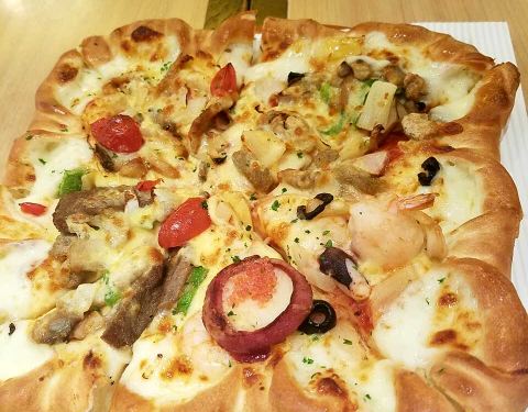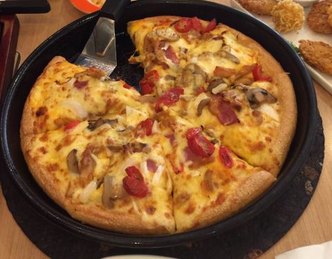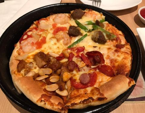 双拼披萨真不是盖的,味道棒级了,吃披萨只选必胜客,虾球,冰激淋,绝配