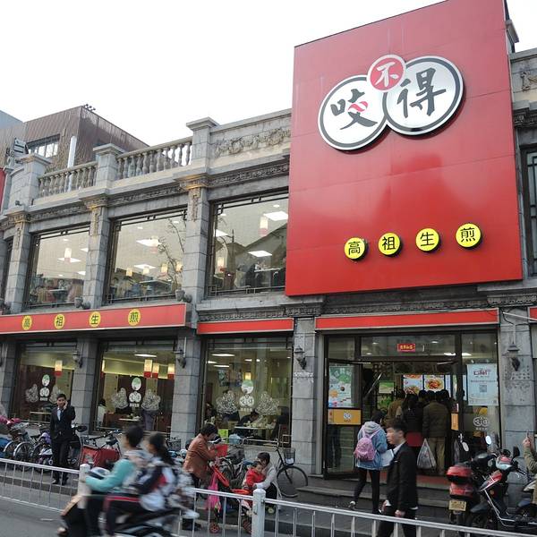高银街上有很多名气很大的饭店,例如下图的咬不得生煎和五芳斋粽子,又如皇饭儿