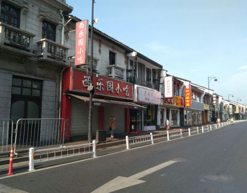 高银街就在西湖东边的吴山脚下,是一条东西走向的街道,顺着街口往西到湖边就是著名的西湖十景之一的“柳浪闻莺”,由于街道两边都是饭馆和小吃店,所以被大家俗称为“高银美食街”。