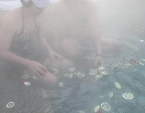 环境很好,在冰天雪地之中一边泡温泉一边喝姜汤,也是一种新的挑战!