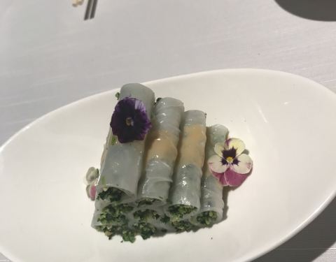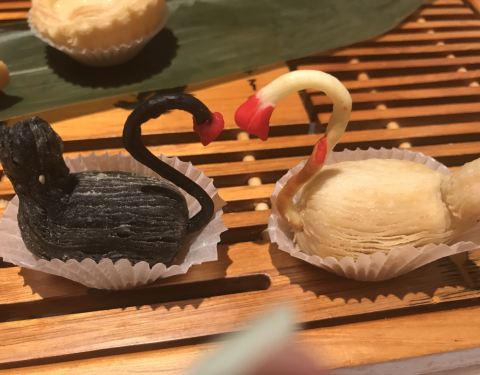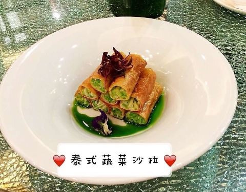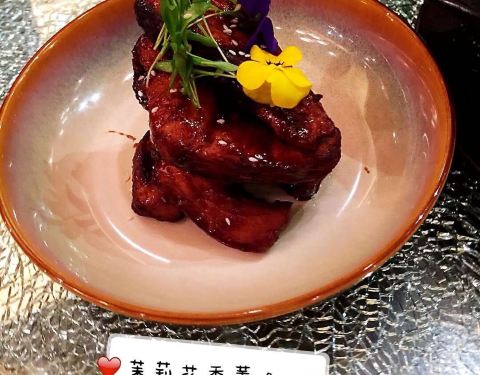 - 点心拼盘卖相不错,尤其喜欢一对天鹅,寓意美好。吐槽一个菜,水晶马兰头,外皮太硬了。龙虾泡饭中规中矩