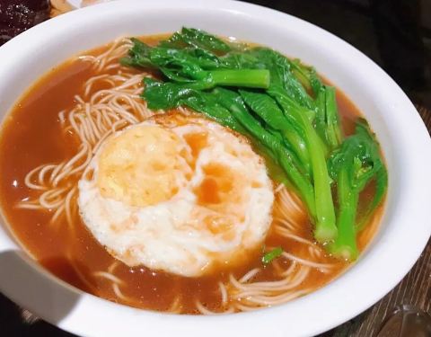 - 娃娃吵着要吃面面,餐厅没有苏式面, 只能点38元一小碗的黄鱼面。不太喜欢这个黑暗的调调