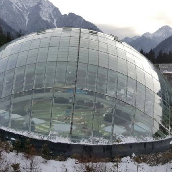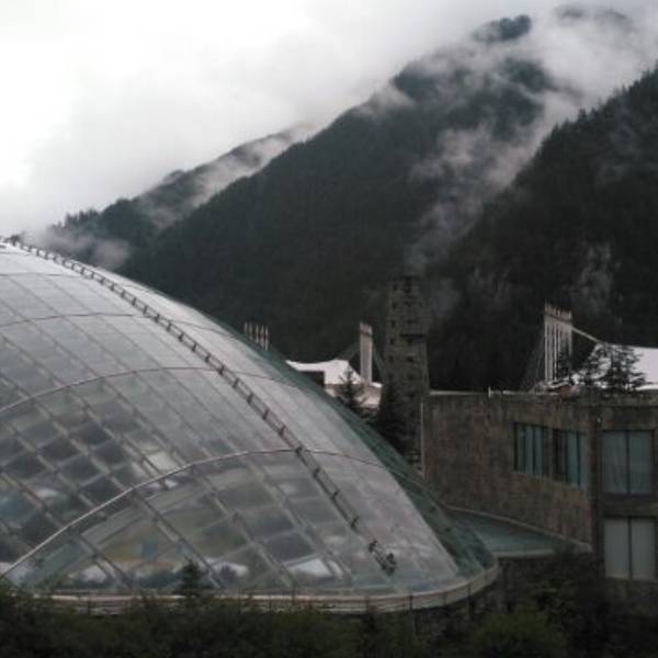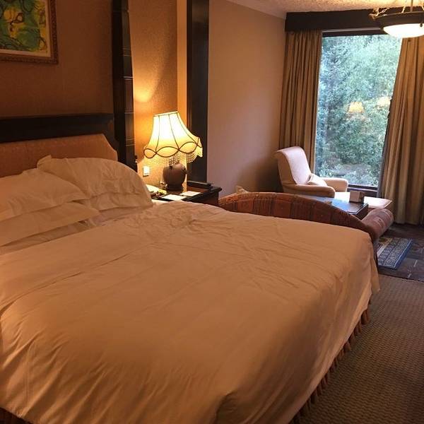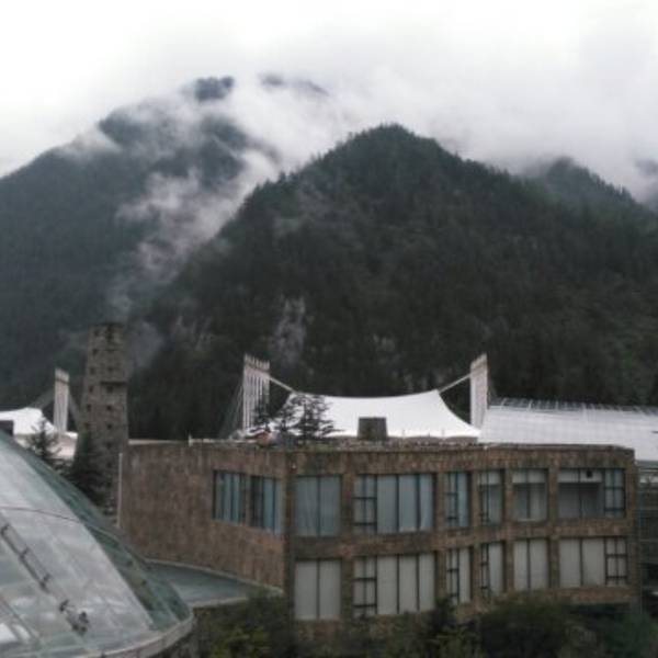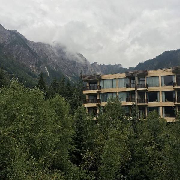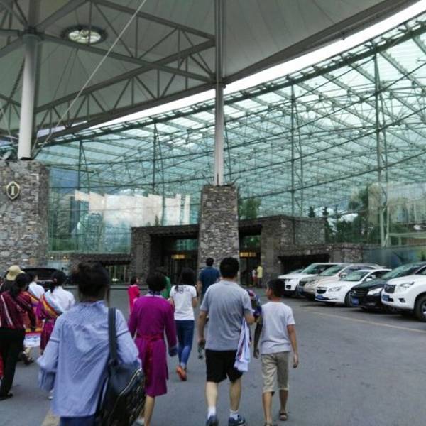 亚洲著名森林度假酒店,位于世界自然遗产--九寨沟景区附近,掩映于崇山峻岭之中,四周风景如画,美不胜收,系九寨天堂核心项目。建筑面积15万平方米,集会议、度假、餐饮、娱乐、休闲、养生、购物、住宿为一体。包括大堂、酒店、艺术展示厅、餐饮中心、天浴温泉中心、古羌寨、会议厅、展览厅、购物娱乐中心等。建筑群背靠雪山,掩没于原始森林之中,以群山环绕、绿树蔽日、碧水流淌的自然环境,配置全球一流的、前卫的建筑形式,使客人在享受高档硬件条件的同时,通过被誉为”消失的建筑” Disappeared architecture的透明的全玻璃顶建筑,溶身心于蓝天白云森林绿树之间。森林别墅依山傍水,远瞻皑皑雪山,前眺碧海草甸,自然环境美妙绝伦。