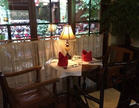 这里的所有主菜量都特别大。果园西餐厅中西式混合的田园小院儿,环境真的很好, 很有情调