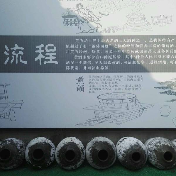 就在鲁迅故居的出口隔壁(三味书屋的斜对面),里面除了介绍做黄酒的流程外,主要是售卖黄酒。黄酒的品种挺全的,价位从几十到几千都有,喜欢喝酒的朋友可以买一些,自饮、馈赠亲朋都不错哦。进绍兴黄酒馆参观不...