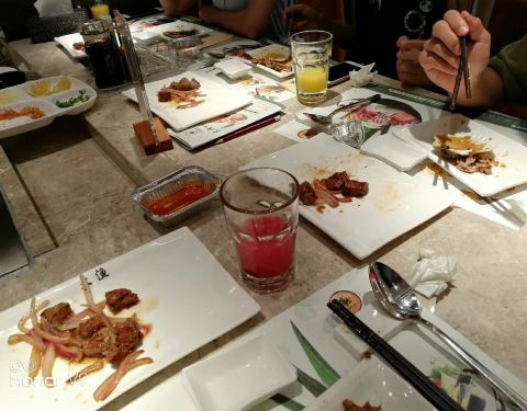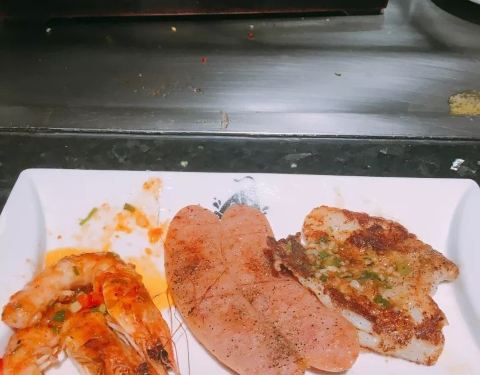 菜式很多,有服务员烤好帮大家每人分一点,这个还挺好的。有各种各样的虾,味道都很好,挺好吃的。牛肉会先处理,弄酱料啥的,烤出来的很入味很嫩。扇贝生蚝也挺好吃。鱼的话有三文鱼有龙利鱼,都还不错。刺身也有,不过感觉刺身一般。